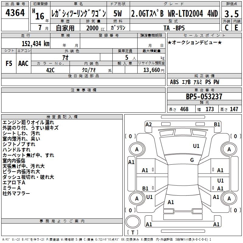 SUBARU LEGACY TOURING WAGON 2.0GT SPEC B WR-LTD 4WD - лот 4364