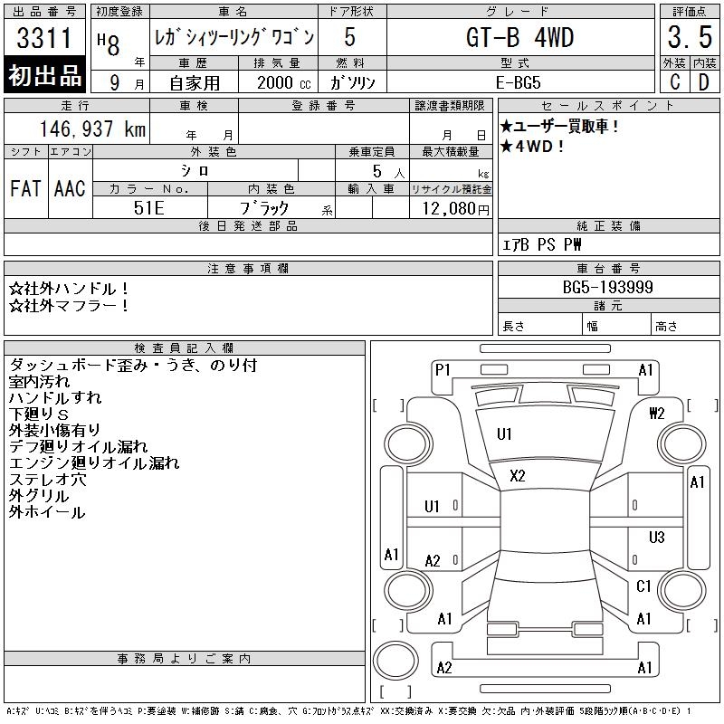 Все аукционы SUBARU LEGACY TOURING WAGON
