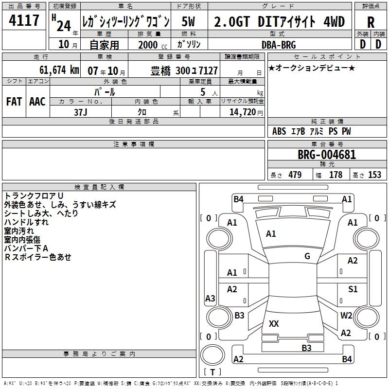 SUBARU LEGACY TOURING WAGON 2.0GT DIT EYESIGHT 4WD - лот 4117