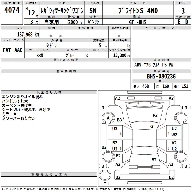 Все аукционы SUBARU LEGACY TOURING WAGON