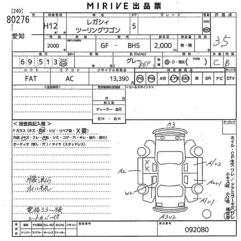 Все аукционы SUBARU LEGACY TOURING WAGON