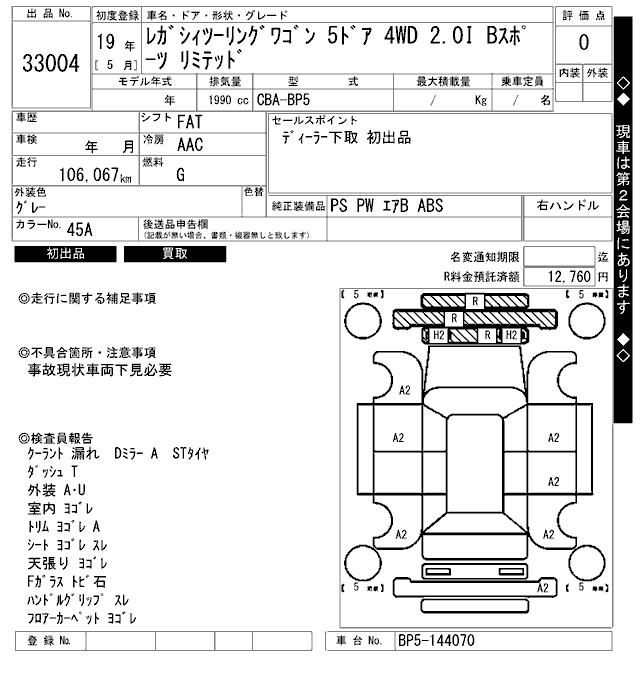 SUBARU LEGACY TOURING WAGON 2.0I B SPORT LIMITED - лот 33004