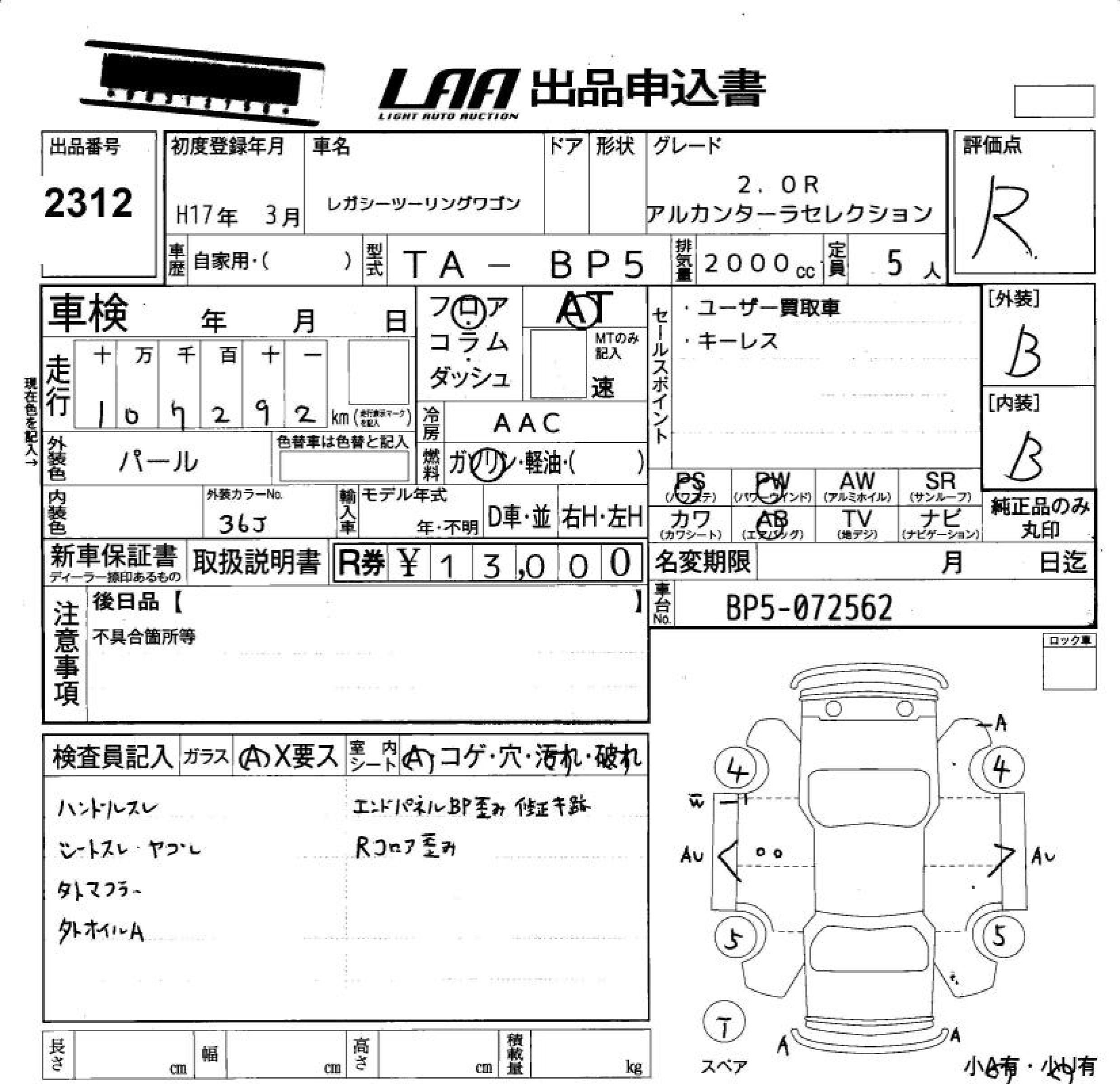 Все аукционы SUBARU LEGACY TOURING WAGON