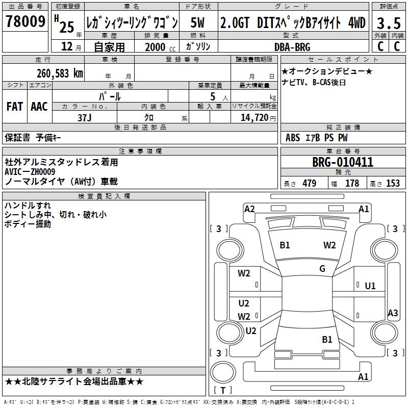 SUBARU LEGACY TOURING WAGON 2.0GT DIT SPECIFICATIONS BA4WD - лот 78009