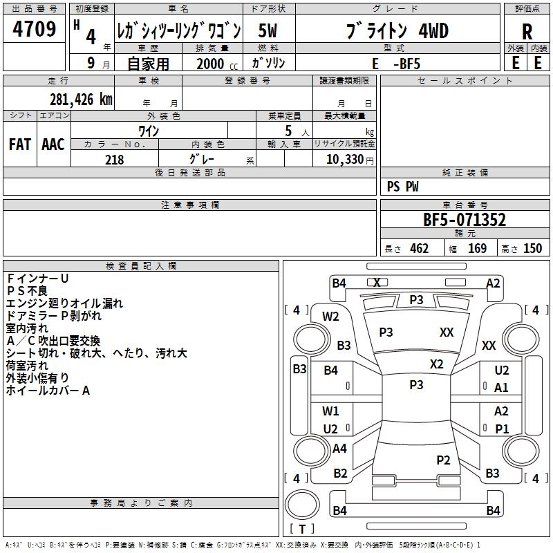 SUBARU LEGACY TOURING WAGON BRIGHTON 4WD - лот 4709
