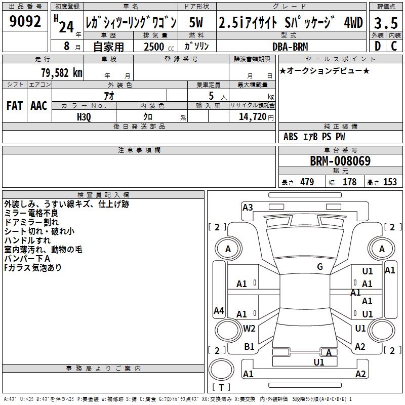 SUBARU LEGACY TOURING WAGON 2.5I EYESIGHT S PACK 4WD - лот 9092