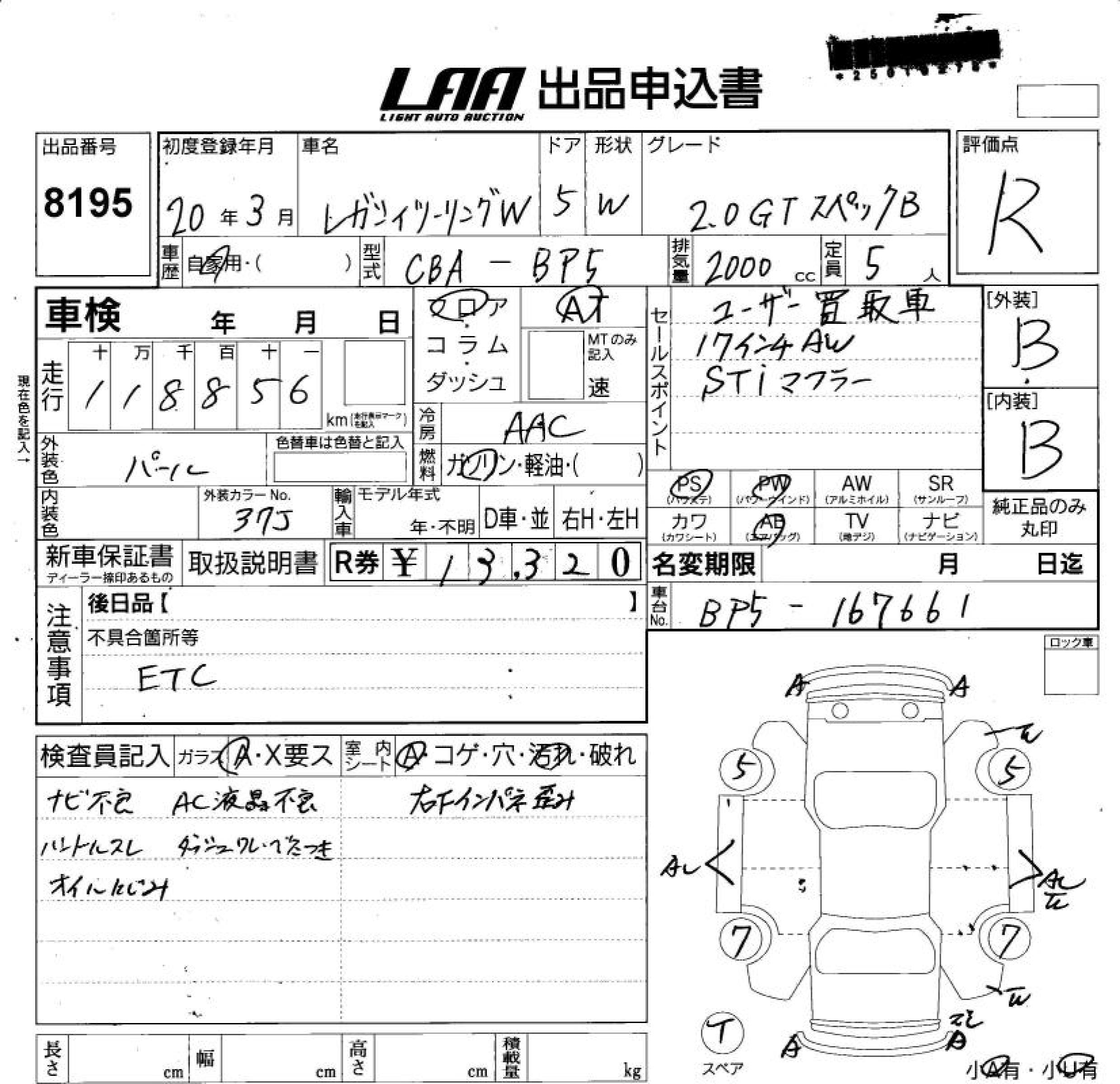 SUBARU LEGACY TOURING WAGON 2.0GT SPECIFICATIONS B - лот 8195
