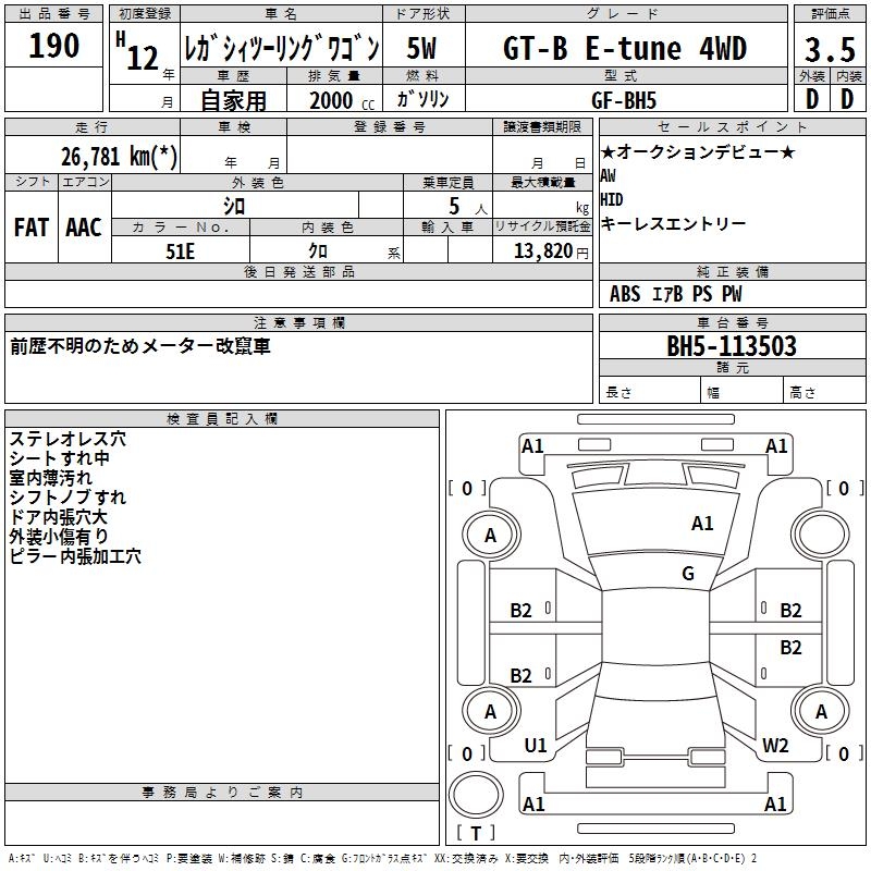 SUBARU LEGACY TOURING WAGON GT-B E-tune 4WD - лот 190