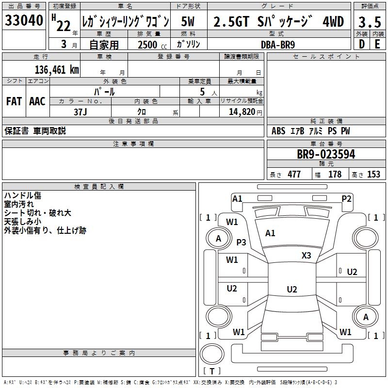 Все аукционы SUBARU LEGACY TOURING WAGON