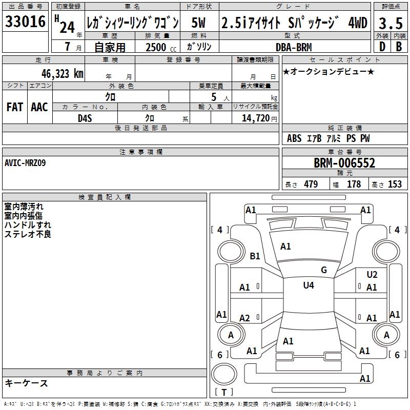 SUBARU LEGACY TOURING WAGON 2.5I EYESIGHT S PACK 4WD - лот 33016