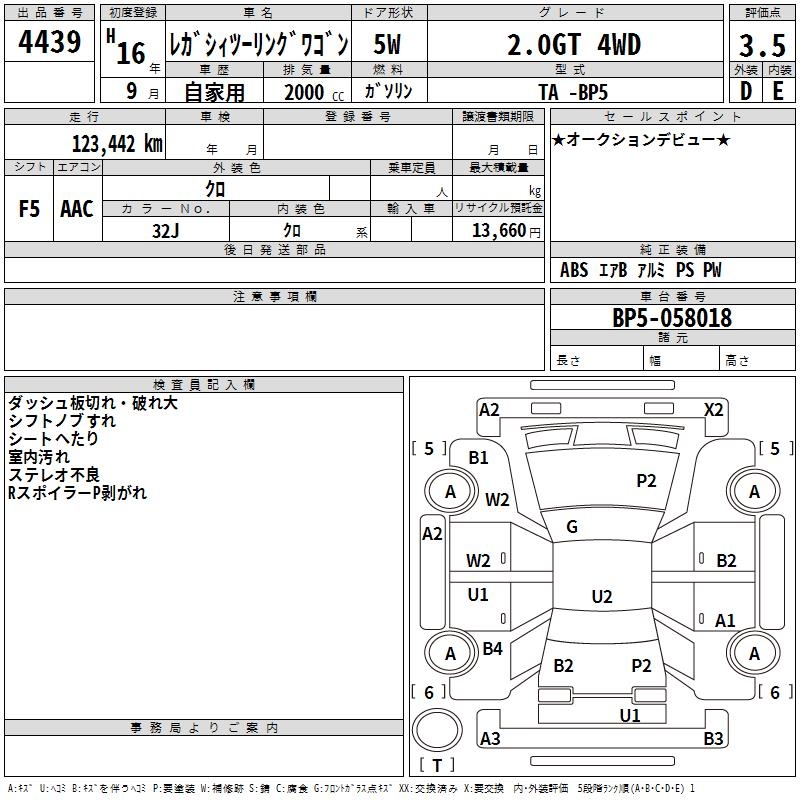 SUBARU LEGACY TOURING WAGON 2.0GT 4WD - лот 4439