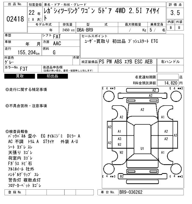 SUBARU LEGACY TOURING WAGON 2.5I EYESIGHT - лот 2418