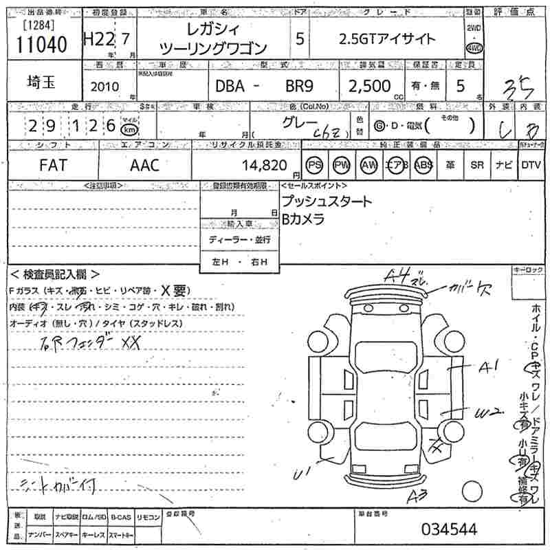 SUBARU LEGACY TOURING WAGON 2.5GT EYESIGHT - лот 11040