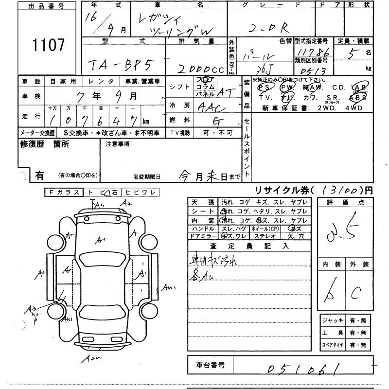 Все аукционы SUBARU LEGACY TOURING WAGON