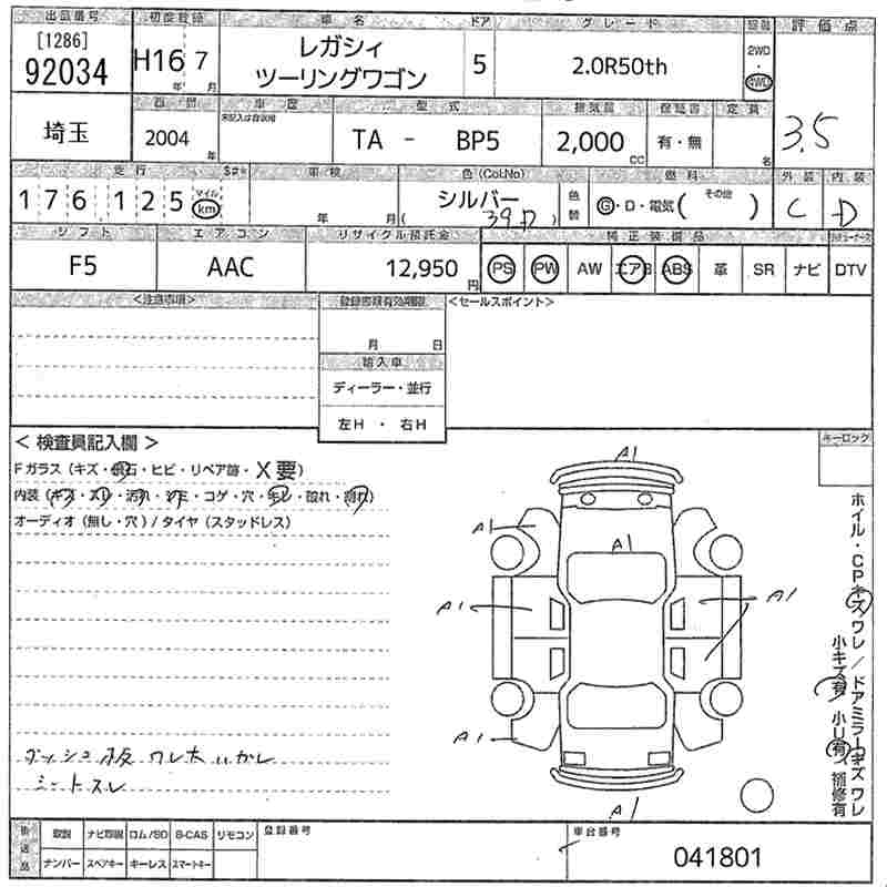 SUBARU LEGACY TOURING WAGON 2.0R50th - лот 92034