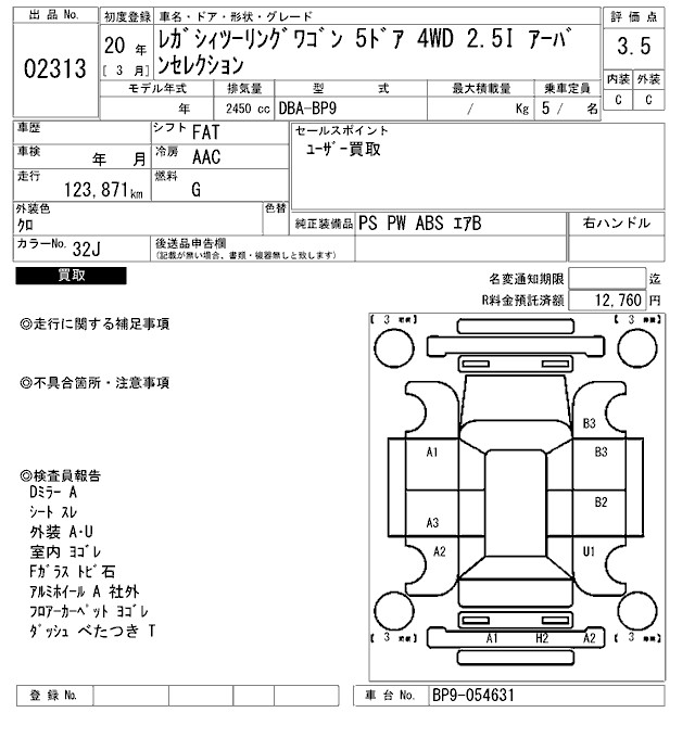 SUBARU LEGACY TOURING WAGON 2.5I URBAN SELECTION - лот 2313