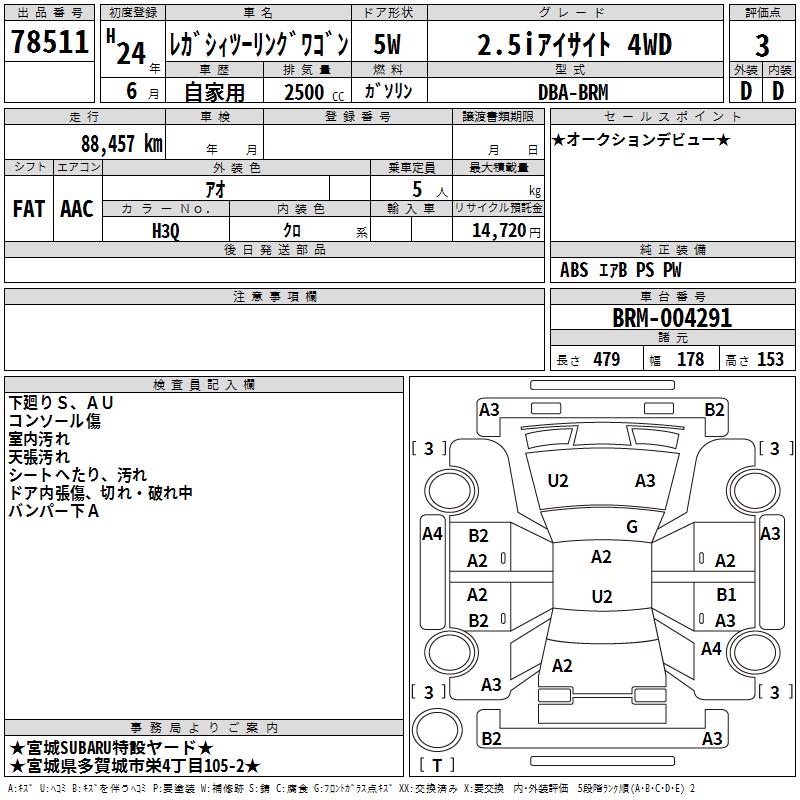 SUBARU LEGACY TOURING WAGON 2.5I EYESIGHT 4WD - лот 78511