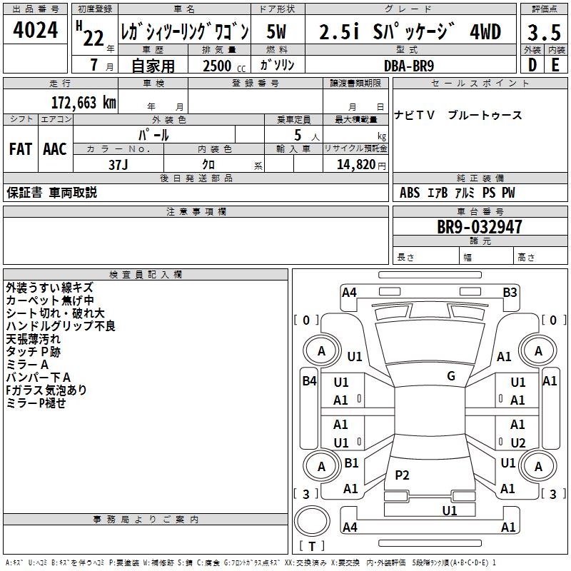 Все аукционы SUBARU LEGACY TOURING WAGON