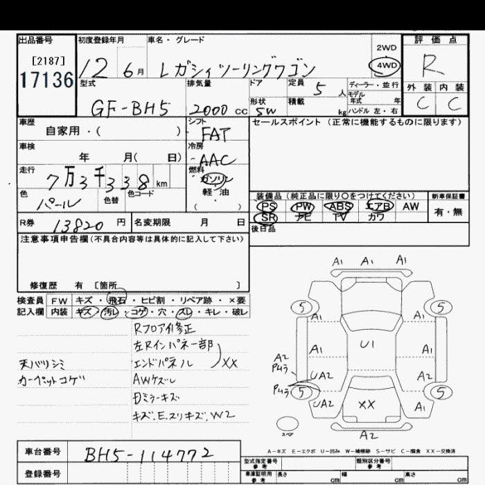 Все аукционы SUBARU LEGACY TOURING WAGON