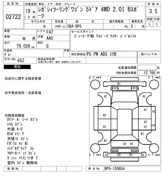 SUBARU LEGACY TOURING WAGON 2.0I B SPORT - лот 2722