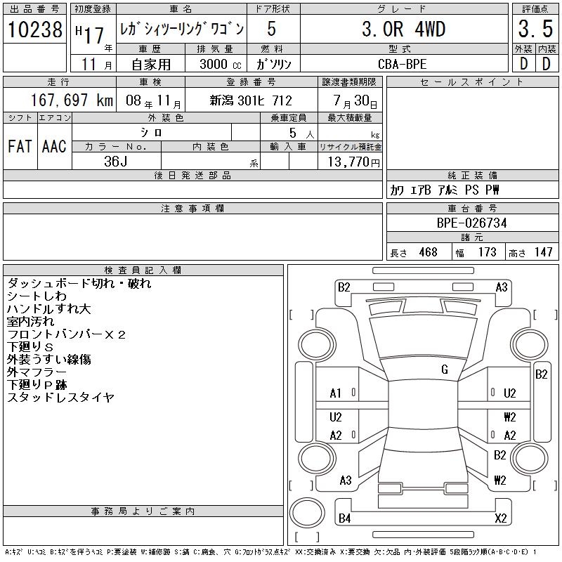 SUBARU LEGACY TOURING WAGON 3.0R 4WD - лот 10238