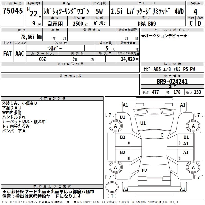 Все аукционы SUBARU LEGACY TOURING WAGON