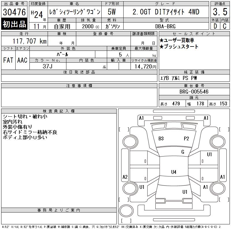 SUBARU LEGACY TOURING WAGON 2.0GT DIT EYESIGHT 4WD - лот 30476