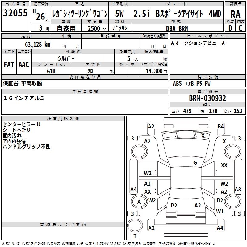 SUBARU LEGACY TOURING WAGON 2.5I B SPORT EYESIGHT 4WD - лот 32055