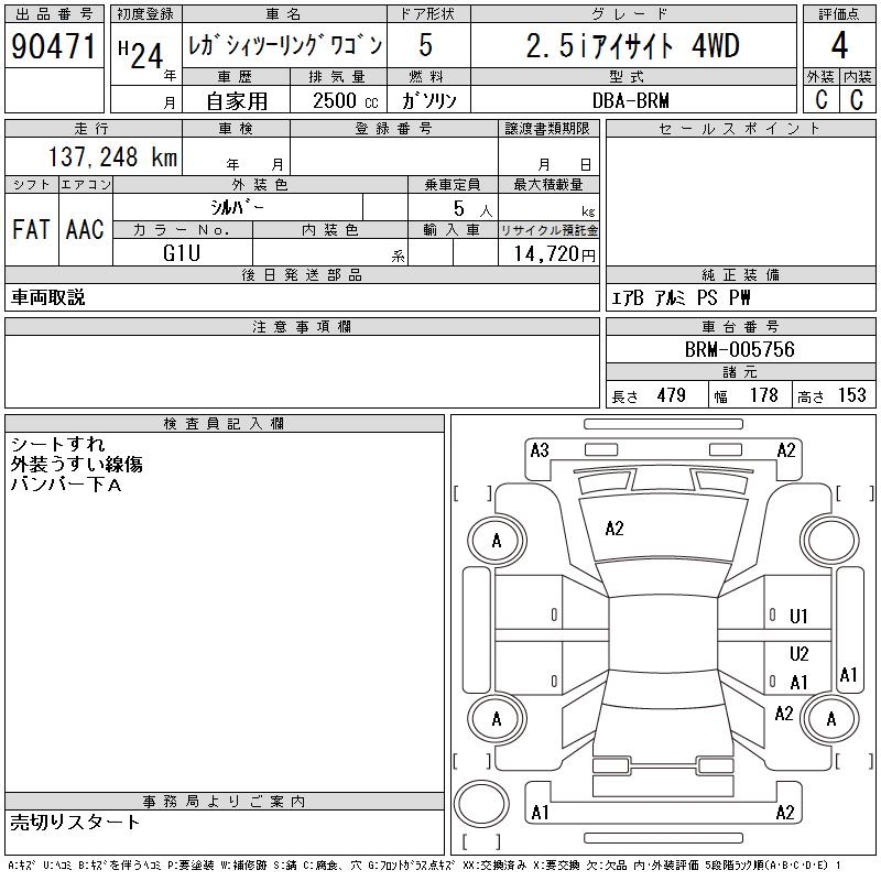 Все аукционы SUBARU LEGACY TOURING WAGON
