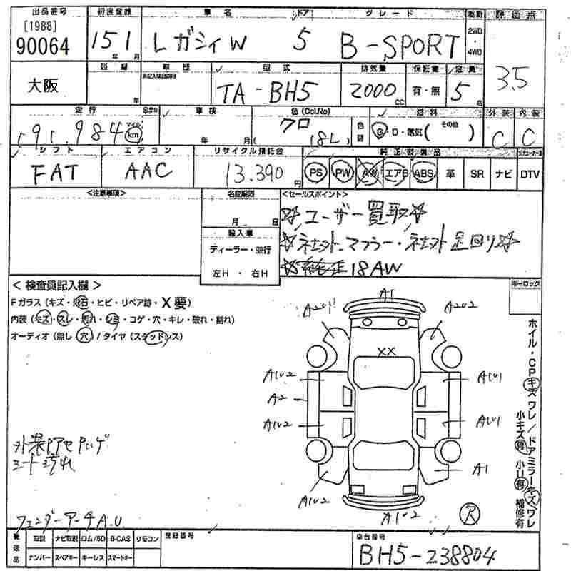 SUBARU LEGACY TOURING WAGON B- SPORT - лот 90064