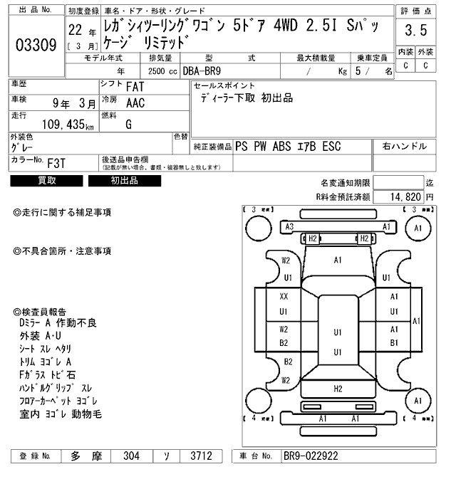 Все аукционы SUBARU LEGACY TOURING WAGON