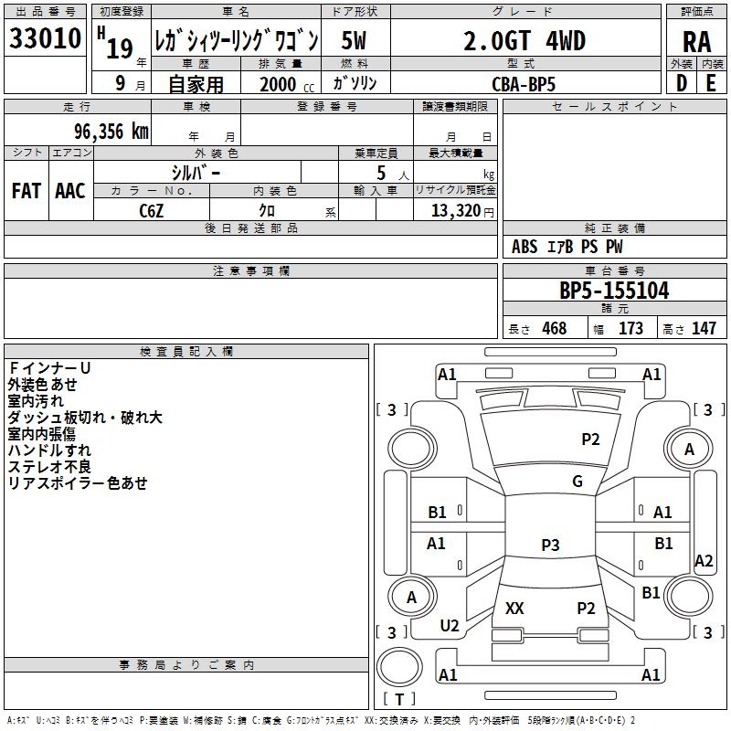 SUBARU LEGACY TOURING WAGON 2.0GT 4WD - лот 33010