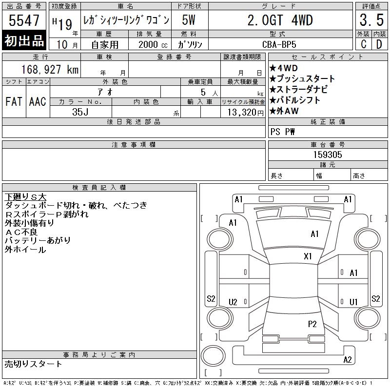 Все аукционы SUBARU LEGACY TOURING WAGON
