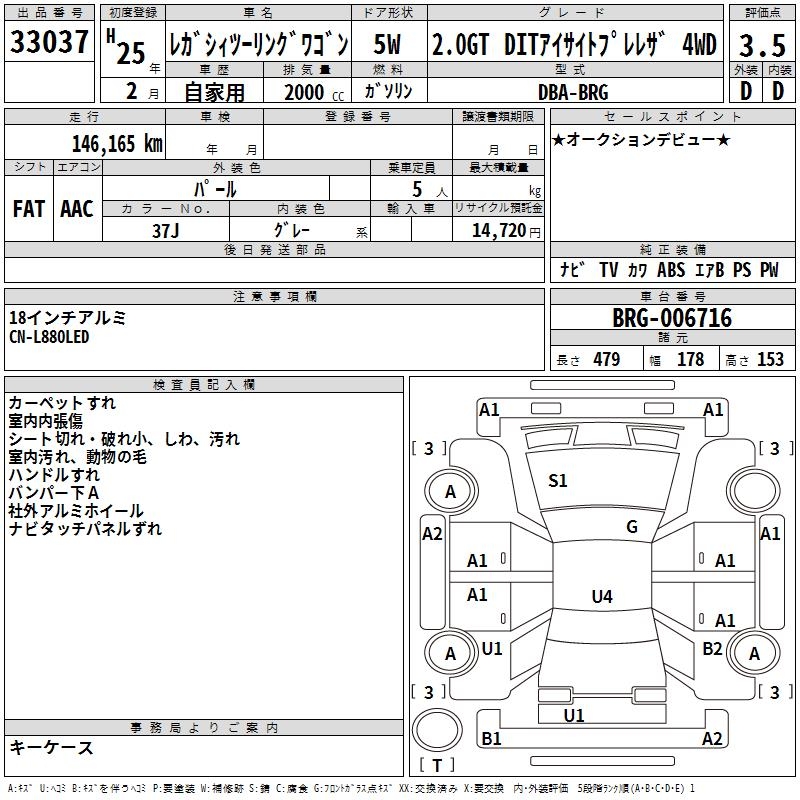SUBARU LEGACY TOURING WAGON 2.0GT DIT EYESIGHT P4WD - лот 33037