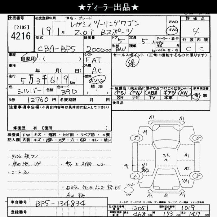 Все аукционы SUBARU LEGACY TOURING WAGON