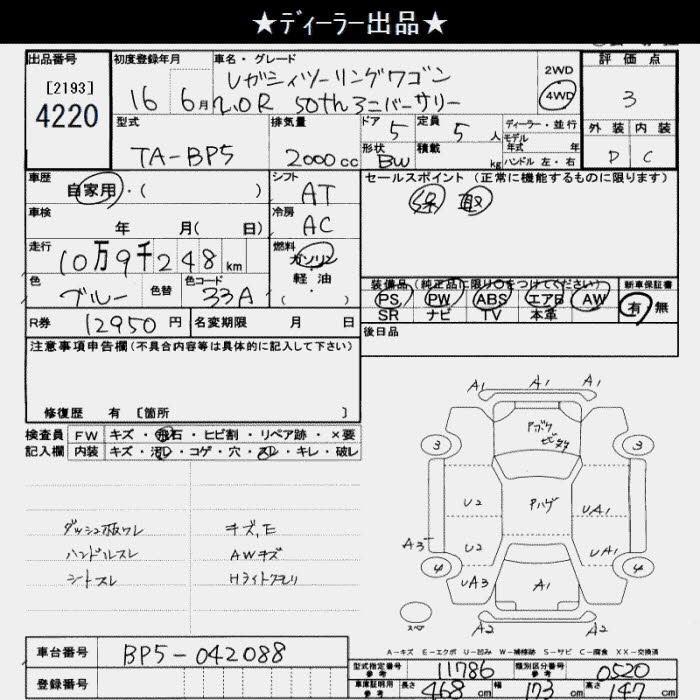 SUBARU LEGACY TOURING WAGON 4WD 2.0R50TH ANNIVERSARY - лот 4220
