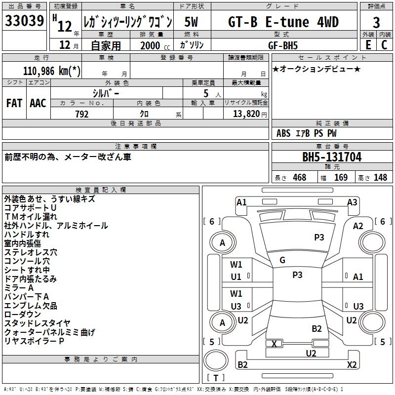 SUBARU LEGACY TOURING WAGON GT-B E-tune 4WD - лот 33039