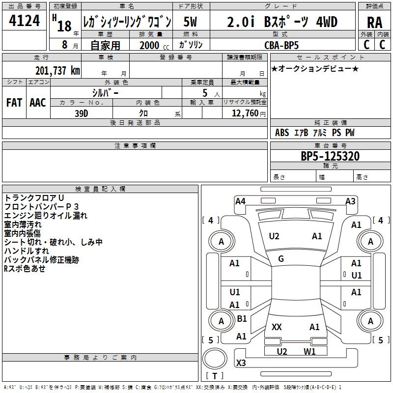 SUBARU LEGACY TOURING WAGON 2.0I B SPORT 4WD - лот 4124