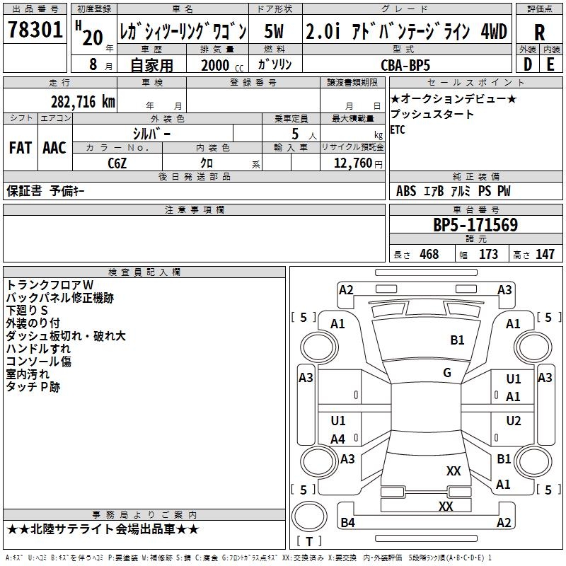 SUBARU LEGACY TOURING WAGON 2.0IADO VANTAGE LA4WD - лот 78301