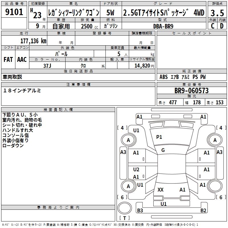 SUBARU LEGACY TOURING WAGON 2.5GT EYESIGHT S PACK 4WD - лот 9101