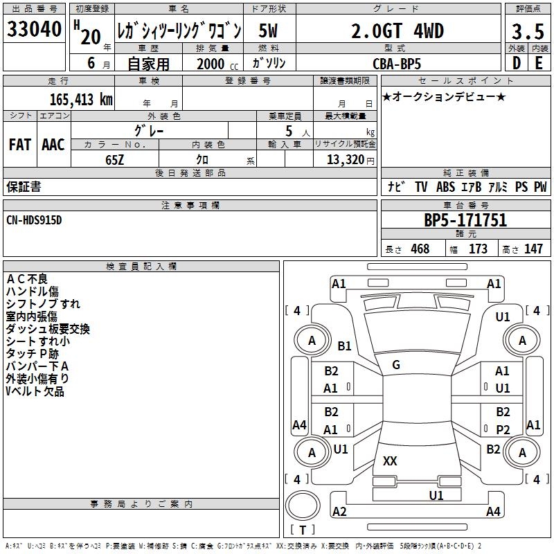 SUBARU LEGACY TOURING WAGON 2.0GT 4WD - лот 33040