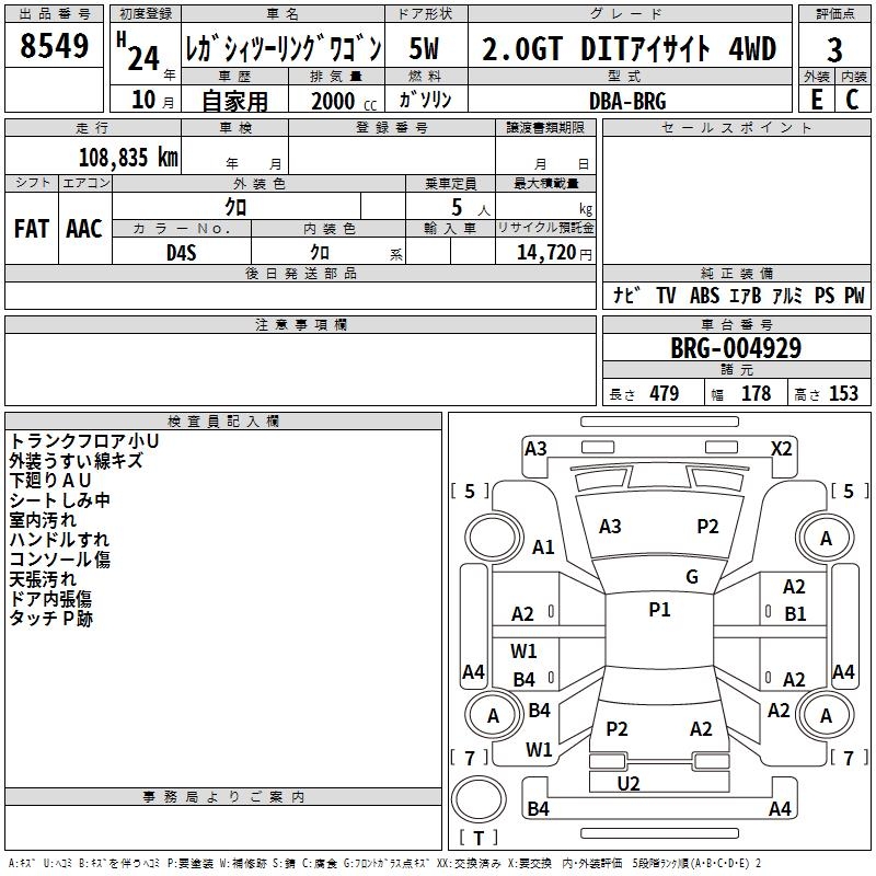 SUBARU LEGACY TOURING WAGON 2.0GT DIT EYESIGHT 4WD - лот 8549