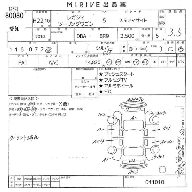 SUBARU LEGACY TOURING WAGON 2.5I EYESIGHT - лот 80080