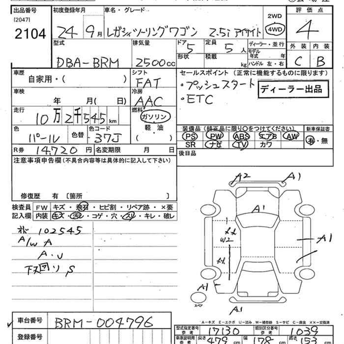 Все аукционы SUBARU LEGACY TOURING WAGON