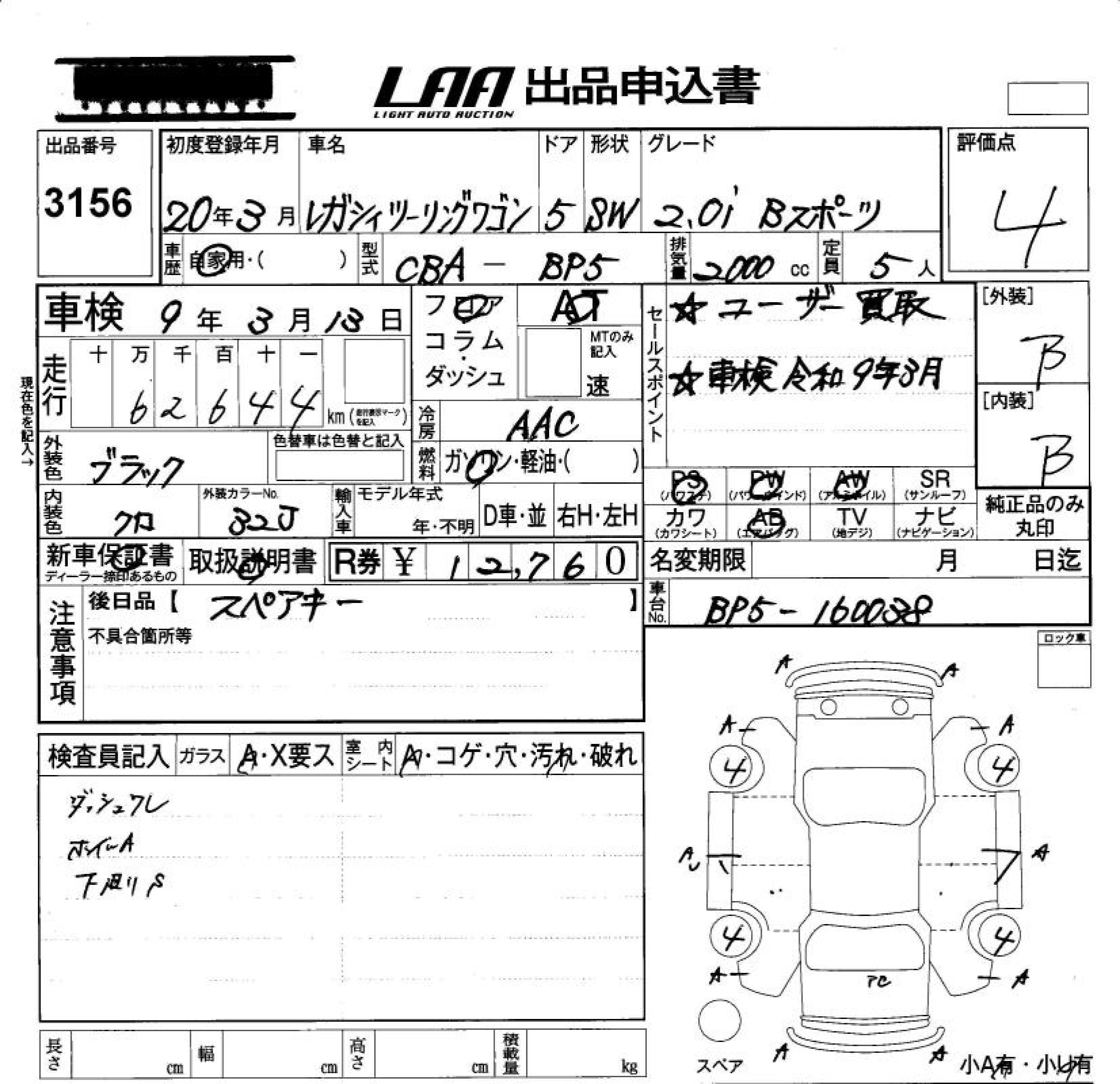 SUBARU LEGACY TOURING WAGON 2.0I B SPORT - лот 3156