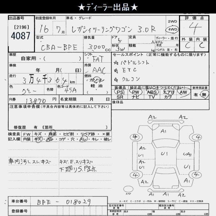 SUBARU LEGACY TOURING WAGON 4WD 3.0R - лот 4087