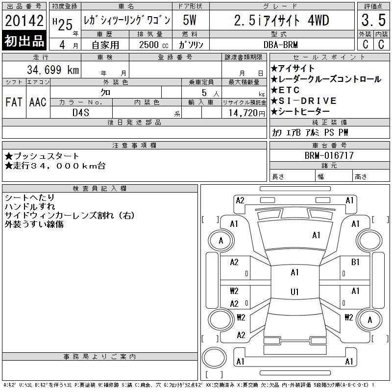 SUBARU LEGACY TOURING WAGON 2.5I EYESIGHT 4WD - лот 20142