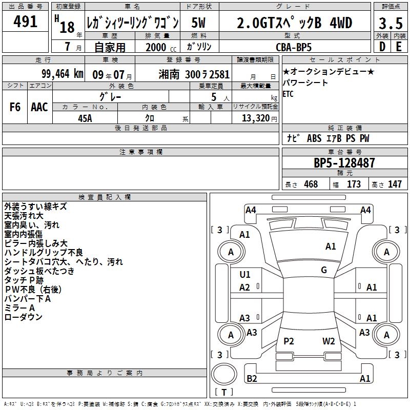 SUBARU LEGACY TOURING WAGON 2.0GT SPECIFICATIONS B 4WD - лот 491