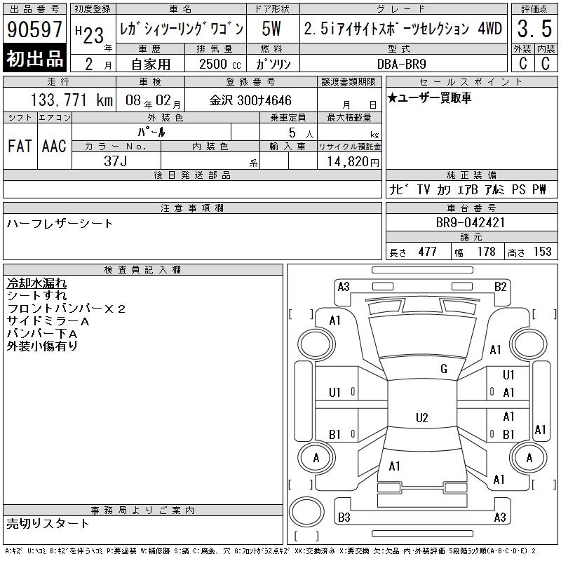 Все аукционы SUBARU LEGACY TOURING WAGON