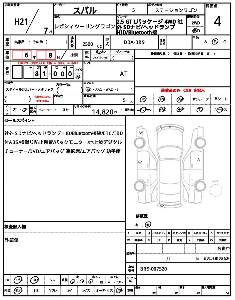 Все аукционы SUBARU LEGACY TOURING WAGON